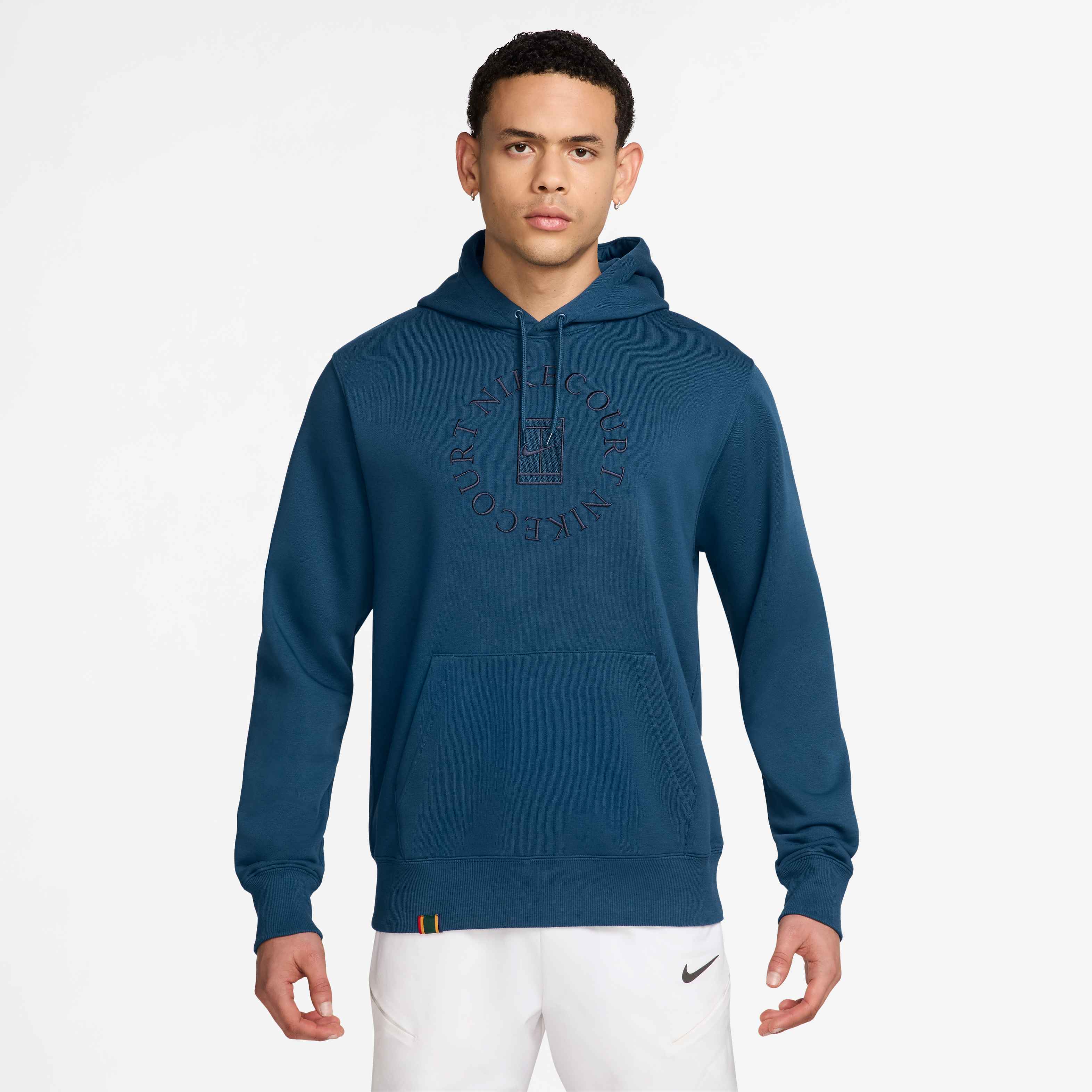 Nike Men's Court Heritage Dri-FIT French Terry Tennis Pullover Hoodie in Blue Force/Obsidian