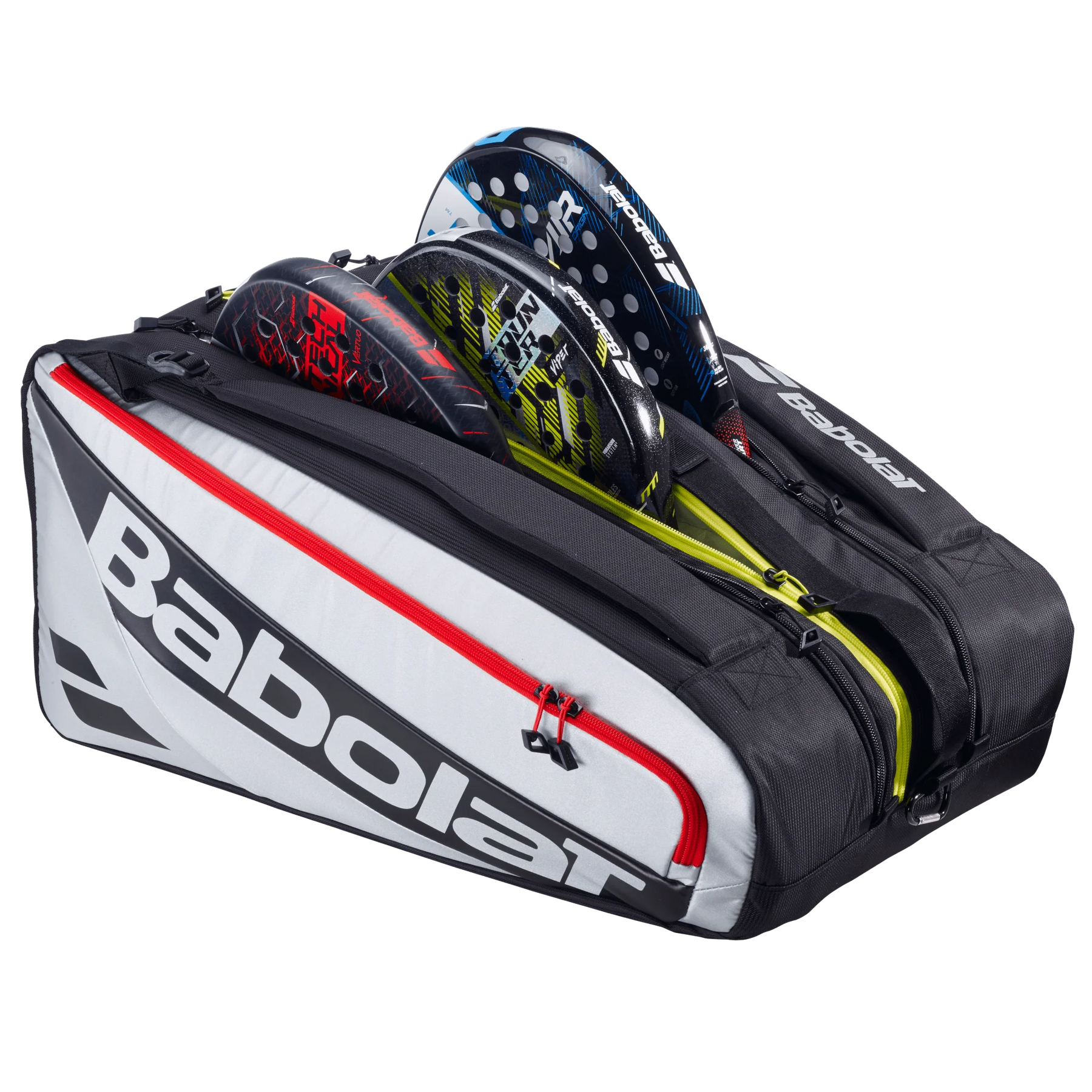 The Babolat RH Pro Padel Bag is engineered for serious players who demand excellence. This premium bag features three dedicated compartments, a breathable shoe pocket, and strategically placed accessory storage to keep your gear organized and accessible. Constructed from ultra-resistant, water-repellent 100% recycled materials, it delivers durability without compromise. The thoughtful design balances functionality with sleek aesthetics, ensuring you're equipped for peak performance both on and off the court. Perfect for players who refuse to settle for anything less than professional-grade equipment management.
