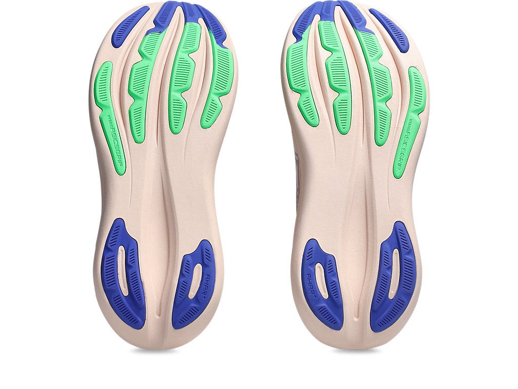 The midsole features a combination of FF BLAST™ PLUS cushioning and PureGEL™ technology. These components help create a lightweight and soft cushioning experience that feels like you're landing on clouds.